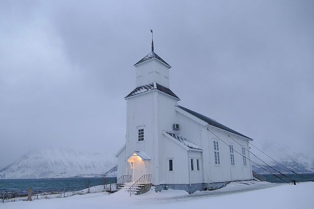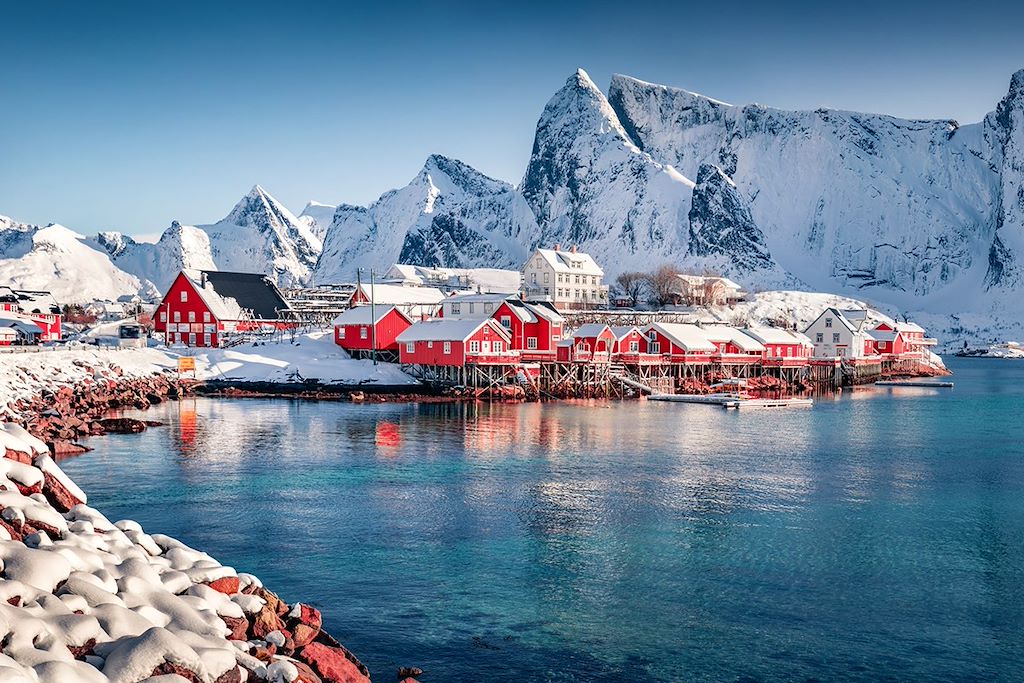 Déambulez dans ce village pittoresque aux cabanes de pêcheurs rouges, avant de rejoindre les environs pour admirer Å, dernier hameau des Lofoten, ou Hamnøy, aux panoramas saisissants. Au fil de la journée, vous pouvez visiter un petit musée local, observer la vie des pêcheurs ou simplement profiter du charme tranquille des rorbus, ces maisons traditionnelles sur pilotis. Pour une expérience plus active, vous pouvez embarquer en kayak sur les eaux calmes du fjord, entourés par les sommets enneigés qui se reflètent dans la mer sombre. Le silence, seulement troublé par le bruit de votre pagaie, renforce la sensation d’être au bout du monde. Lorsque le soleil bas décline derrière les montagnes, le ciel s’embrase de reflets dorés et rosés. Et le soir venu, scrutez l’horizon, espérant que les aurores boréales viennent illuminer la nuit polaire.