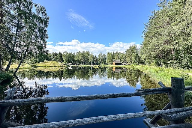 Vol à destination d'Oslo. Depuis l'aéroport d'Oslo, transfert en train de ligne vers Lillehammer (1h45 env.) où le guide accueillera les participants à la gare. Vers 18h, transfert groupé (1h) pour l'auberge située au bord du lac d'Espedalen. Après le dîner, rendez-vous avec le guide et répartition de l'équipement individuel de la semaine entre le canoë et la randonnée.