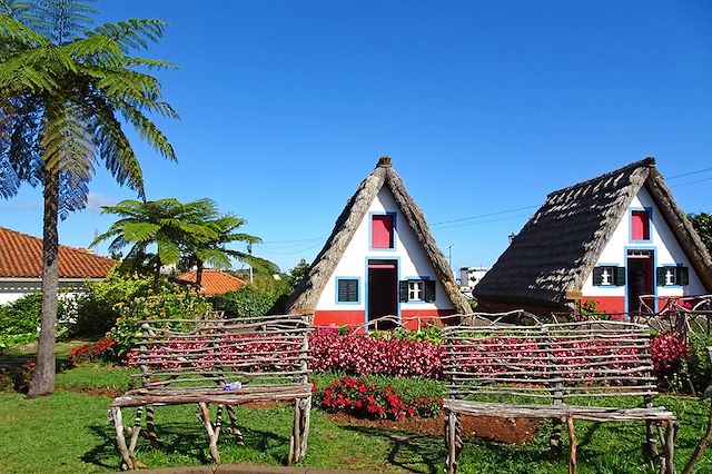 Transfert à Santana, célèbre pour ses maisons de forme triangulaire en toit de chaume. Installation pour trois nuits dans votre hébergement avec piscine.