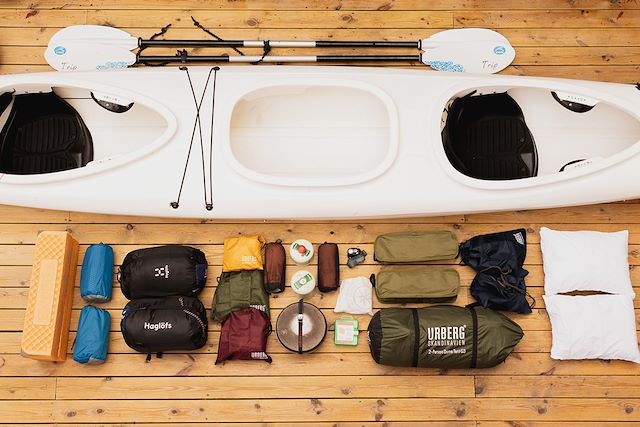 - Couche extérieure : veste et pantalon coupe-vent ou imperméables. Après tout, nous sommes en Suède et le temps peut varier. Une veste de kayak imperméable et des gants en néoprène sont inclus.