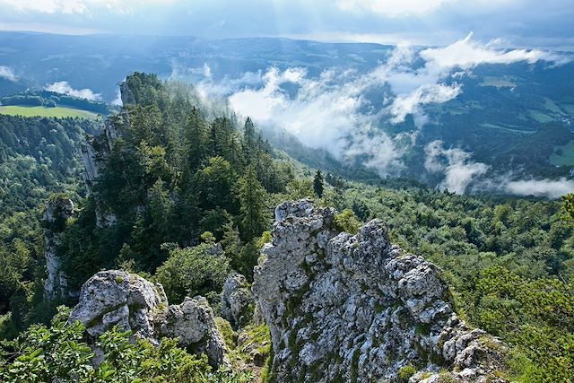 Randonnée à la découverte des collines du Jura, qui traversent la Suisse en un arc nord-ouest. L'itinéraire emprunté offre des vues splendides sur les Alpes, les Vosges et la Forêt Noire. Les chemins ponctués de falaises abruptes, de grottes encaissées, de lacs et de petits cours d'eau vous mènent au-delà de la frontière linguistique suisse et vous révèlent l'ampleur de la diversité culturelle de cette contrée. Le "pays du fromage" vous réserve également de belles expériences culinaires, que vous aurez l'occasion de découvrir au cours de cette itinérance à travers le Jura.